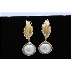 14K Y/G MABE PEARL AND DIAMOND EARRING/11.94 GRAMS/PEARL 15.00MM APPROX