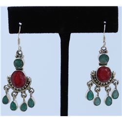 Sterling Silver .925 Vintage Emerald gem stone 12.45gram Dangle Earrings