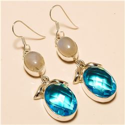Blue Topaz/Moonstone Earring Solid Sterling Silver