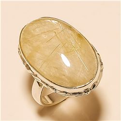 Golden Rutile RING Solid Sterling Silver Length:0.75inch Weight:7gram #R-097