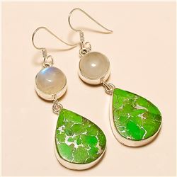 Green Copper Turquoise/Moonstone Earring Solid Sterling Silver