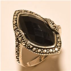 Black quartz RING Solid Sterling Silver Length:1inch Weight:8gram #R-260