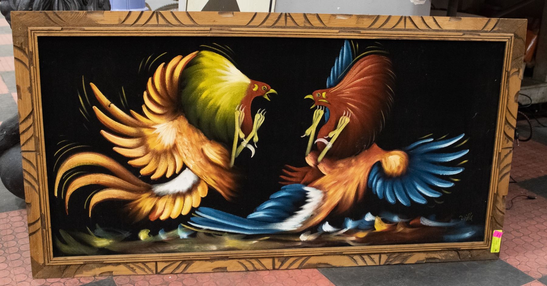 VELVET RETRO PAINTING OF FIGHTING ROOS 24" X 48"