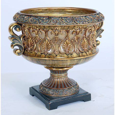"VENETIAN BOWL" - FLEUR - DE - LIS AND SCALLOP - SHELL DETAILS IN A PIERCED - CARVED STYLE OVER TRANSLUCENT DIAMOND - CUT BOWL WALLS - CARVED - SCROLL DETAIL - HAND - WASH ANTIQUING - DIMENSIONS - 15L X 13D X 12.5H - WEIGHT - 6.5 LB