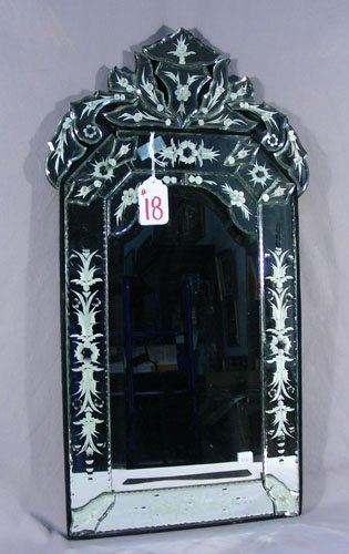 Etched and beveled glass. 30" high, 16 1/2" wide.