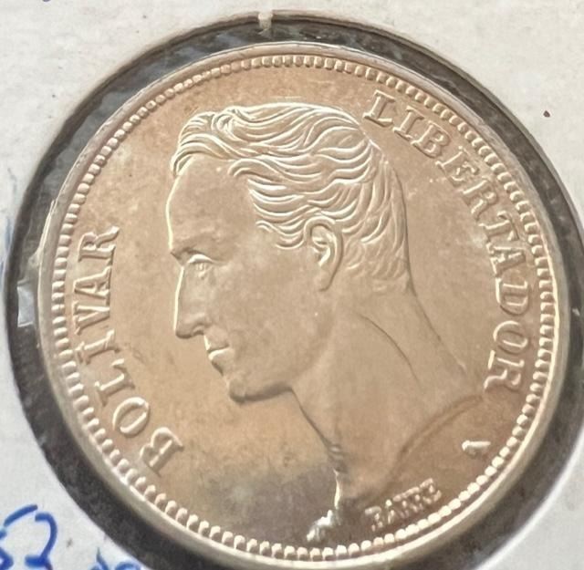 VENEZUELA 2 DOS BOLIVARES 1965 SILVER COIN 835% A/UNCIRCULATED