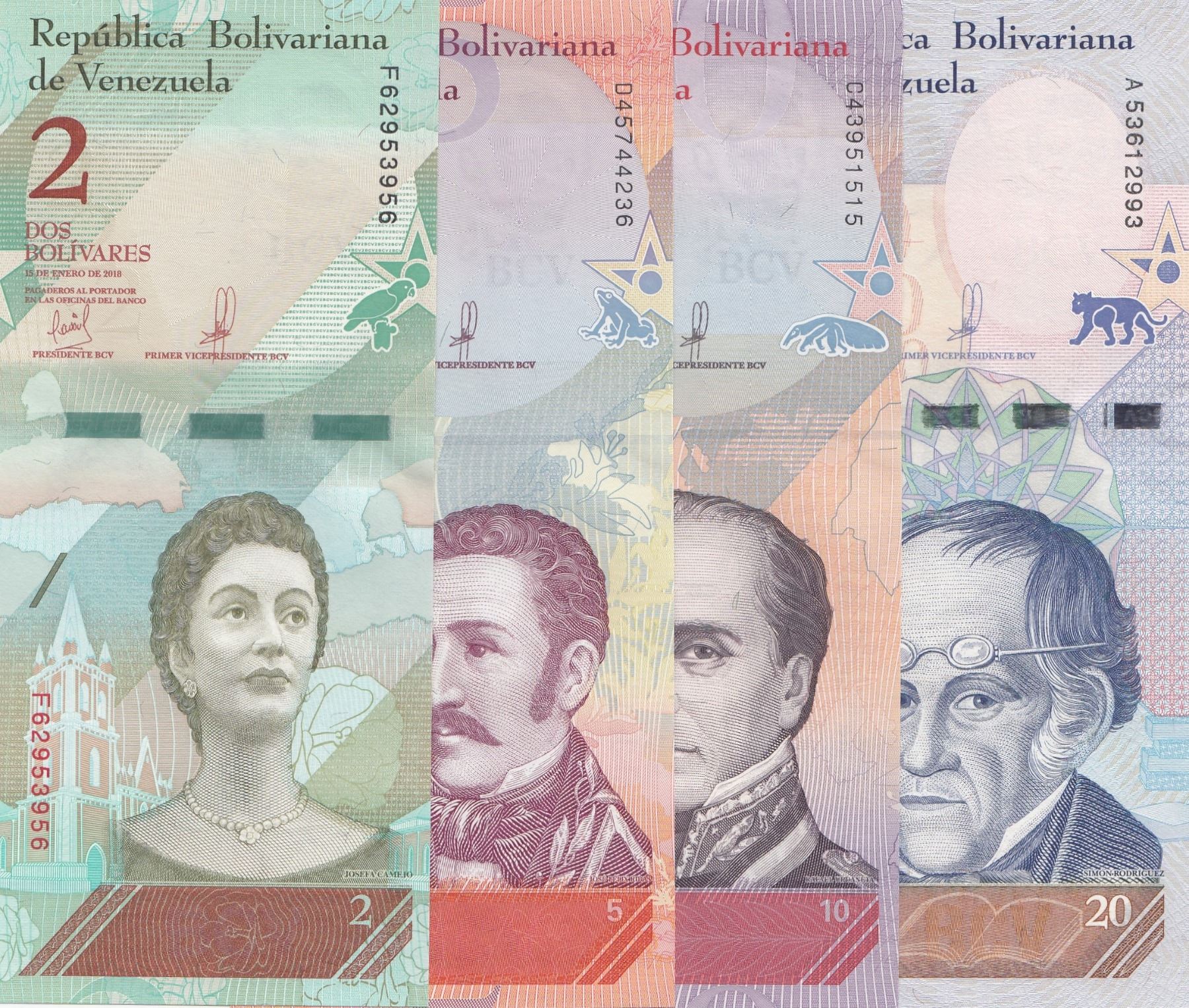 Venezuela, 2 Bolivares, 5 Boivares, 10 Bolivares and 20 Bolivares, 2018, UNC, (Total 4 banknotes)