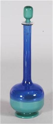 VENINI BOTTLE VASE with stopper, by Gio Ponti, 14" high, marked Venini, Murano, Italia, CONDITION: excellent, no damage or repairs. PACKING AND SHIPPING BY FAIRFIELD AUCTION WITHIN CONTINENTAL USA (excluding insurance) $30,