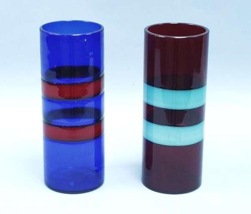 VENINI - Two Italian "A Fasce" coloured glass vases by Fulvio Bianconi, produced by Venini. One is acid stamped. 11" high. 4000-4500