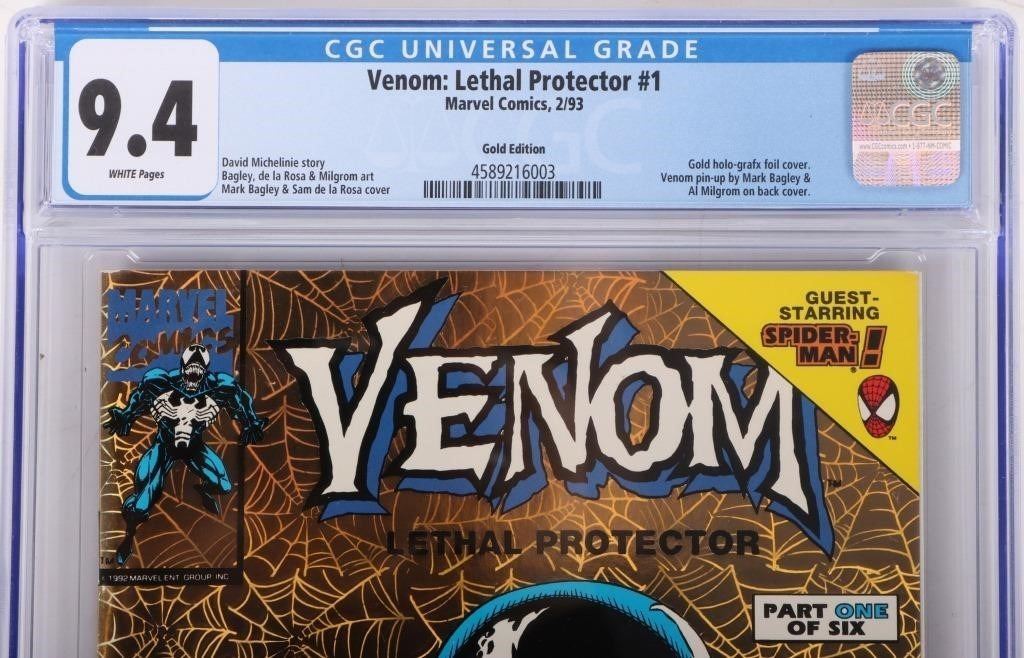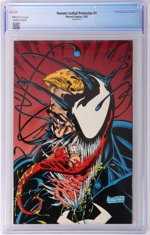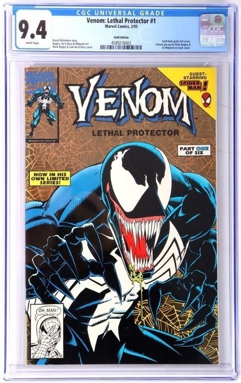 Venom: Lethal protector #1 Gold holo-grafx foil cover. Venom pin-up by Mark Bagley & Al Milgrom on back cover.