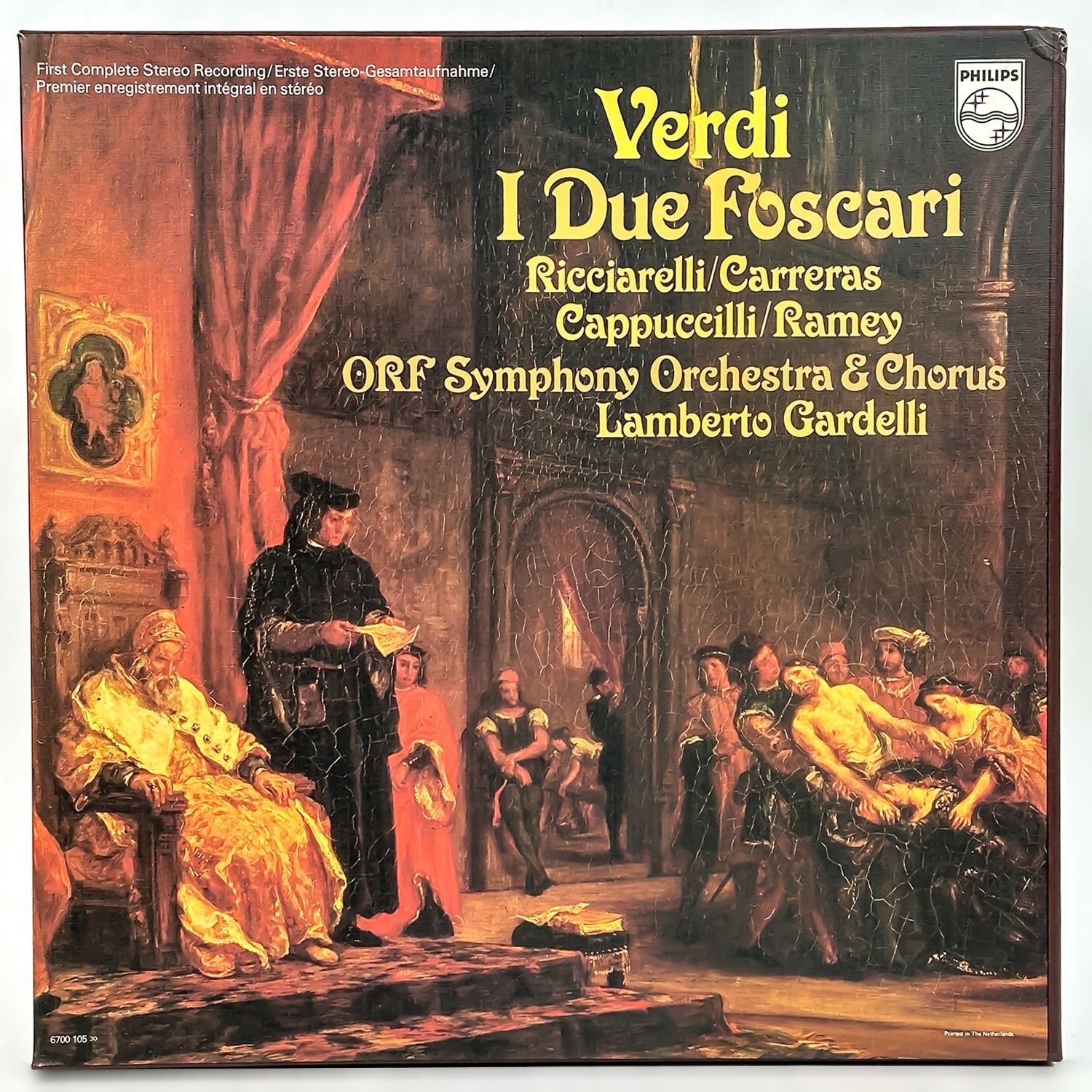 #9586 - 2X VINYL LP BOX SET & INFORMATIONAL INSERT. RECORD ALBUM FROM PRIVATE COLLECTION OF CLASSICAL/OPERA RECORDS. CLASSICAL, ROMANTIC, OPERA. VERDI - I DUE FOSCARI. RICCIARELLI, CARRERAS, CAPPUCCILLI, RAMEY. ORF SYMPHONY ORCHESTRA & CHORUS - LAMBERTO GARDELLI. PHILIPS RECORDS 6700 105