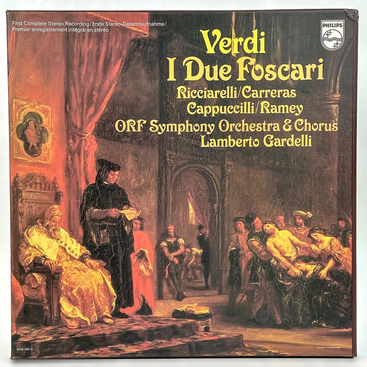 #9594 - 2X VINYL LP BOX SET & INFORMATIONAL INSERT. RECORD ALBUM FROM PRIVATE COLLECTION OF CLASSICAL/OPERA RECORDS. CLASSICAL, ROMANTIC, OPERA. VERDI - I DUE FOSCARI. RICCIARELLI, CARRERAS, CAPPUCCILLI, RAMEY. ORF SYMPHONY ORCHESTRA & CHORUS - LAMBERTO GARDELLI. PHILIPS RECORDS 6700 105