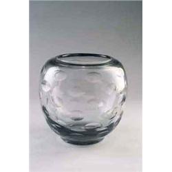 VEREINIGTE LAUSITZER GLASWERKE AG., Weisswasser Wilhelm Wagenfeld Vase, leicht anthrazitfarbenes Glas. Umlaufend mit Kugelschliff, über rundem eingezogenen Stand gebaucht mit aufgetriebenem Rand. H.: 15,5 cm. Mod.Nr. 111 lt. Werkverzeichnis. Unbezeichnet. 1930er Jahre Lit.: Manske, B., Scholz, G. (Hrsg.), Täglich in der Hand, Industrieformen von W. Wagenfeld aus sechs Jahrzehnten, 3. Aufl., Bremen 1994, S. 104, Abb. 61, 63 (zu Dekor und Form), S. 310, Nr. 111.