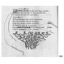 VERHAEREN, Emile - Almanach. [Cahier de vers ornementé par Théo van Rysselberghe]. [Bruxelles, Dietrich, 1895], in-8 carré, demi-chagrin lie-de-vin, "Verhaeren" doré sur le 1er plat, dos lisse fileté doré en long et orné de fleurons dorés et à froid (petits frottements), couv. ornementée cons. € 1000/1250 Exemplaire de l'édition originale entièrement corrigé par Verhaeren en vue de la deuxième édition qui paraîtra en 1908 au Mercure de France. Le titre impr. de cet ex. tiré en vert sur Ingres a disparu, tout comme le calendrier et la 1ère pleine page. Verhaeren a utilisé le f.bl. limin. pour y inscrire son nouveau titre et la dédicace à Théo Van Rysselberghe "qui illustra, magnifiquement, la première édition de ces poèmes" (devient "qui illustra, avec art, ..." dans la version impr.). Aucun poème n'a échappé à la correction : tous sont maintenant titrés (certains ne l'étaient pas) et qqs-uns portent de nouveaux titres (notamment "Les errants" en Février : le poète hésite entre "Ceux qui vont", "La pluie", "Les coeurs où tombent les pluies" pour retenir "Les pauvres"), - Mars, Mai, Juin et Décembre ne subissent que qqs changements, - Janvier (avec un fragment surcollé), Février, Avril (id.), Juillet, Septembre et Novembre connaissent de sérieux remaniements par suppression, parfois importante, addition et correction, - Août et Octobre présentent un texte entièrement différent, y compris d'inspiration : Août, jadis titré "Le Soleil", devient "Les mouches" (sur un f. surcollé, de la main de Verhaeren) et Octobre, jadis non titré, s'intitule "La chasse" (sur un f. surcollé, en grande partie d'une autre main, celle de Marthe ?, avec qqs additions de Verhaeren), - une "Table" apparaît in fine. Le texte de la 2e édition est conforme au nôtre mais le poète a encore procédé à qqs corrections ultérieures (il a par exemple supprimé un paragraphe entier de Novembre, qui n'était que corrigé). Dédic. aut.s. de Verhaeren à madame Trutchel (?, l'orthographe de Verhaeren est hésitante) "pour que les douze mois de chaque année lui soient bienveillants dans la vie". Provenance (sans ex-libris) : Louis Stainier.