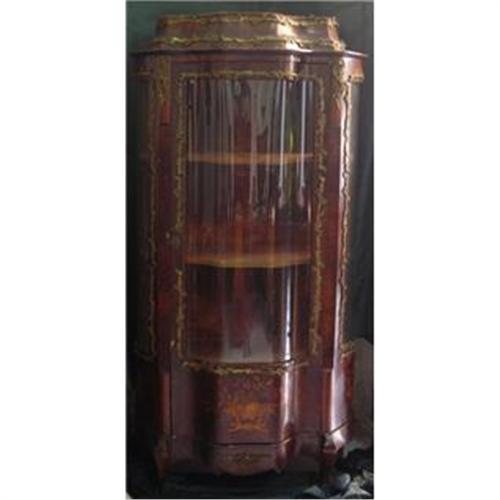The inlay of the precious woods (rose palisander, walnut) evokes style and ancient epoches, when the furnishing was above all boast for owners.The showcase to a shutter, with glass made convex also on the sides causes an elegant floral theme inlay in the low part which has similitudes with the decorative bronzes to original vegetable reasons of the furniture.Showcase still causes the original internal tapestries, which have not chosen to restore. It is a excellent complement of furniture that is able to enrich every environment.