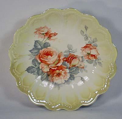 VERY EARLY PORCELAIN SERVING BOWL - POSS. GERMAN OR BAVARIAN - Note on bottom states it was given from Great Grandmother to Grandmother in 1915. Approx. 10.5" diameter.
