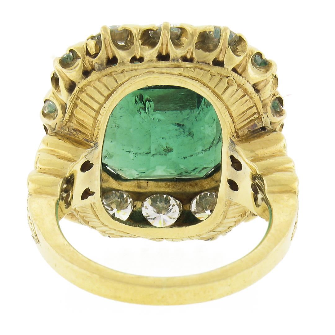 A solid 18k yellow gold cocktail ring, with 1 AGL graded emerald cut natrual colombian emerald (11.5ct ), surrounded with a halo of 14 round cut natural diamonds (F/G - VS1/VS2 ; 2.80ctw). The ring is size 6.5, weighs a total of 13.68 grams, and measures 23mm wide. Comes with all original relevant certifications.