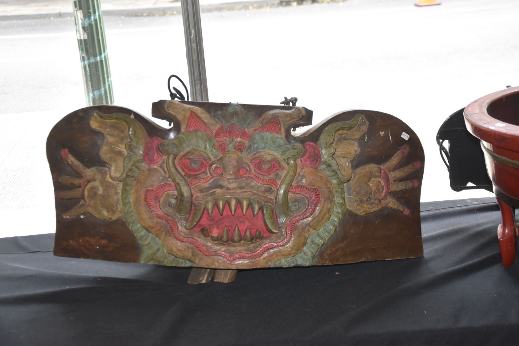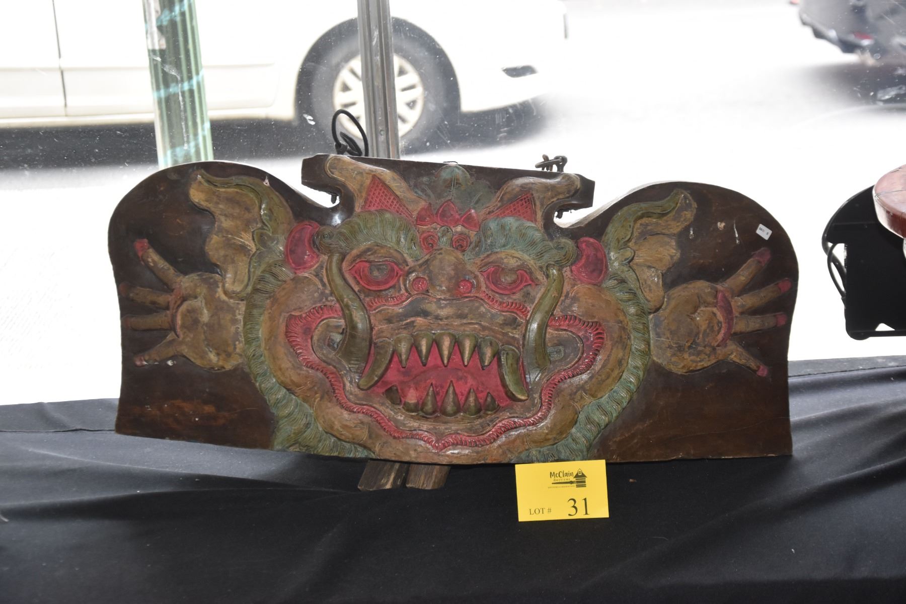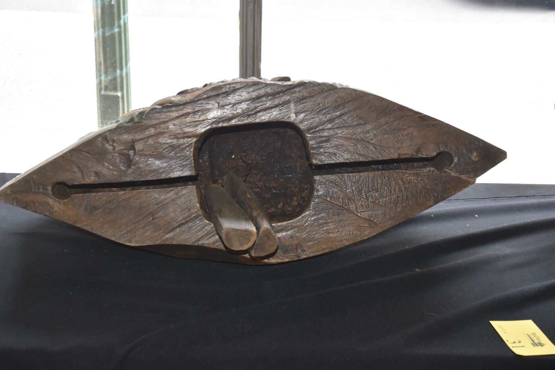 VERY LARGE & HEAVY HAND PAINTED SLIT WOOD ELEPHANT BELL (POSSIBLY INDONESIAN)
