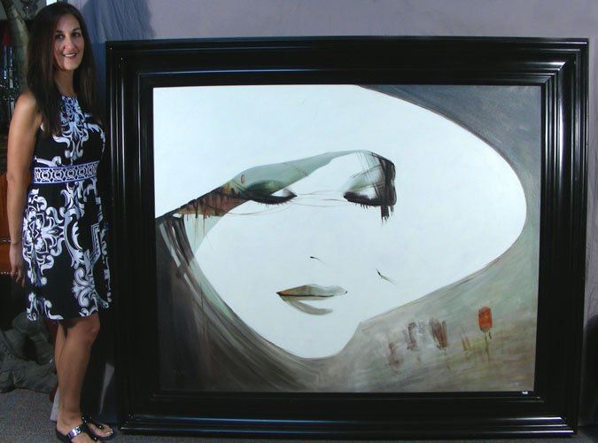 Very fine detail. Signed Yolez. Large beveled frame. Image 48" x 60", Overall 62 1/2" x 74 1/2".