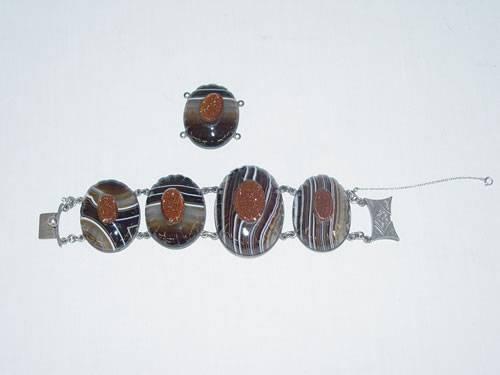VERY LG. STERLING AGATE and GOLDSTONE VICT. BRACELET W/ EXTRA LINK ENCLOSED;