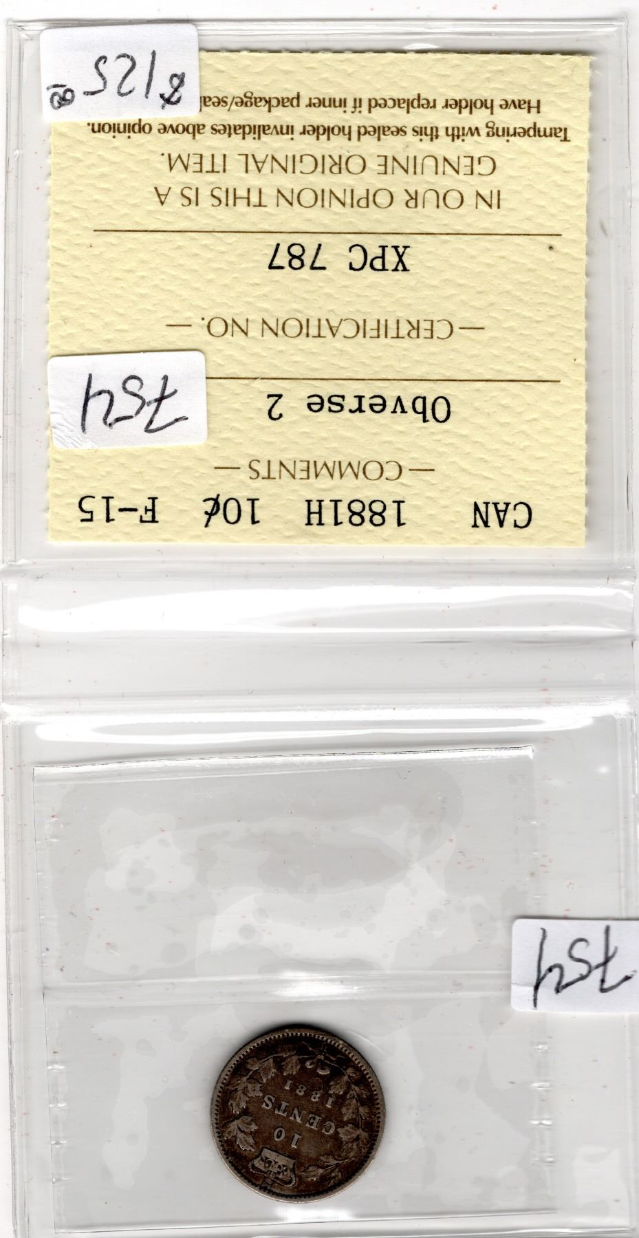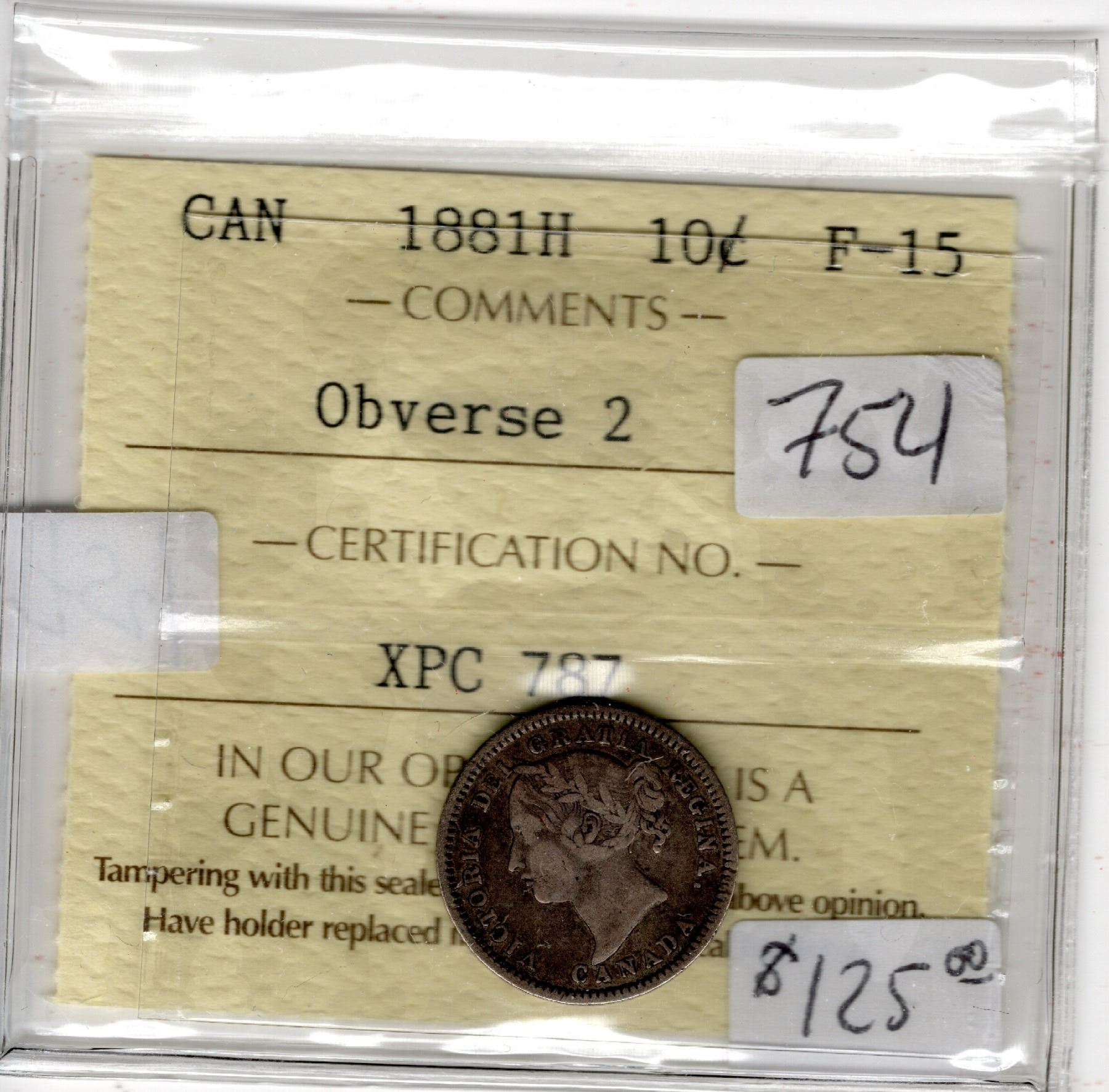 VERY NICE 1881H 10 CENT F-15, OBV2, ICCS CERTIFIED