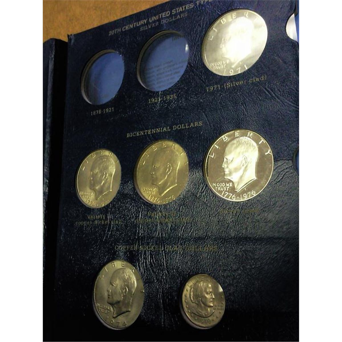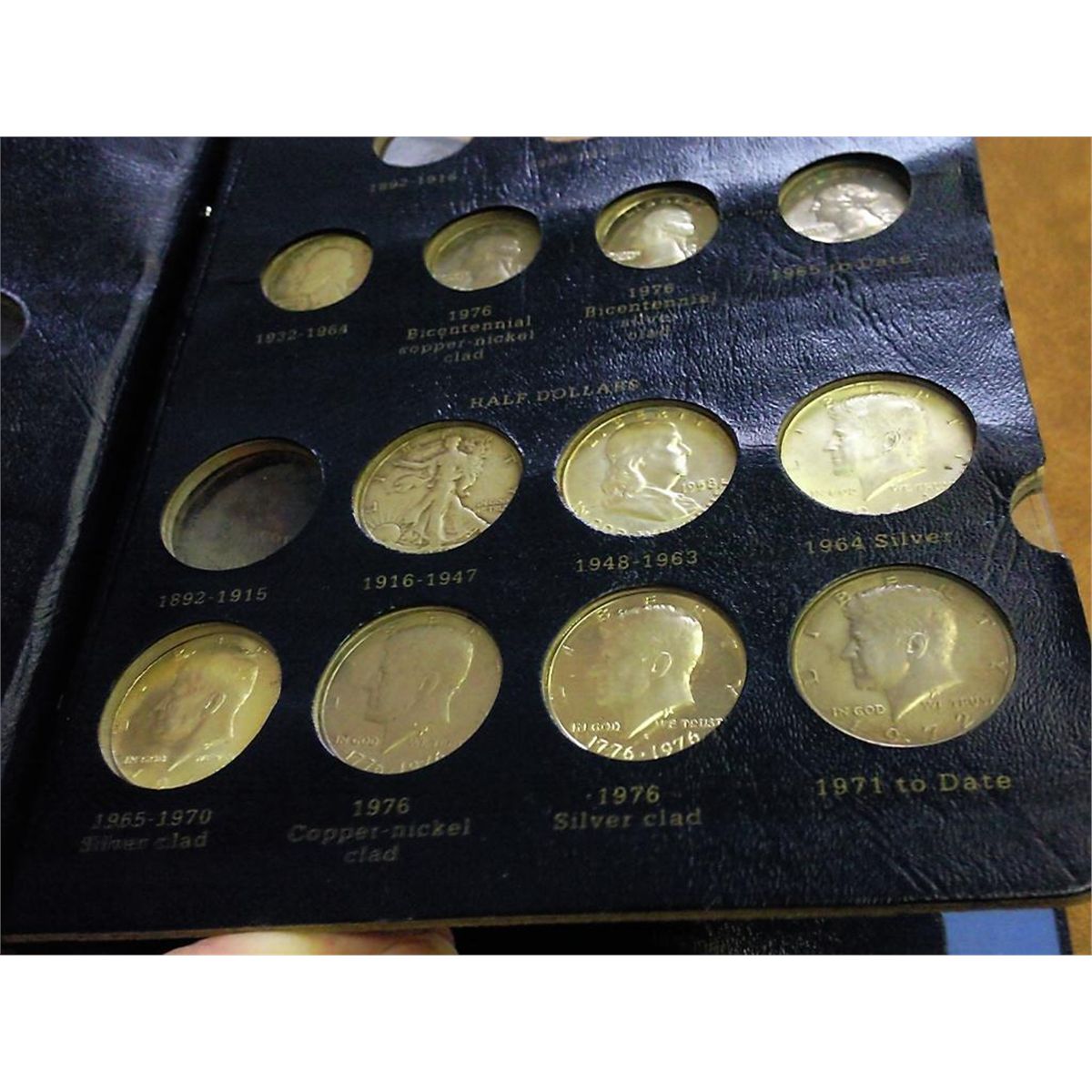 ALBUM, INDIAN HEAD CENT, 4-LINCOLN CENTS, 4-NICKELS, 3-DIMES (2 SILVER), 4 QUARTERS (2 SILVER), 7 HALVES (5 SILVER), 4 IKE DOLLARS (2 SILVER) AND SBA DOLLAR