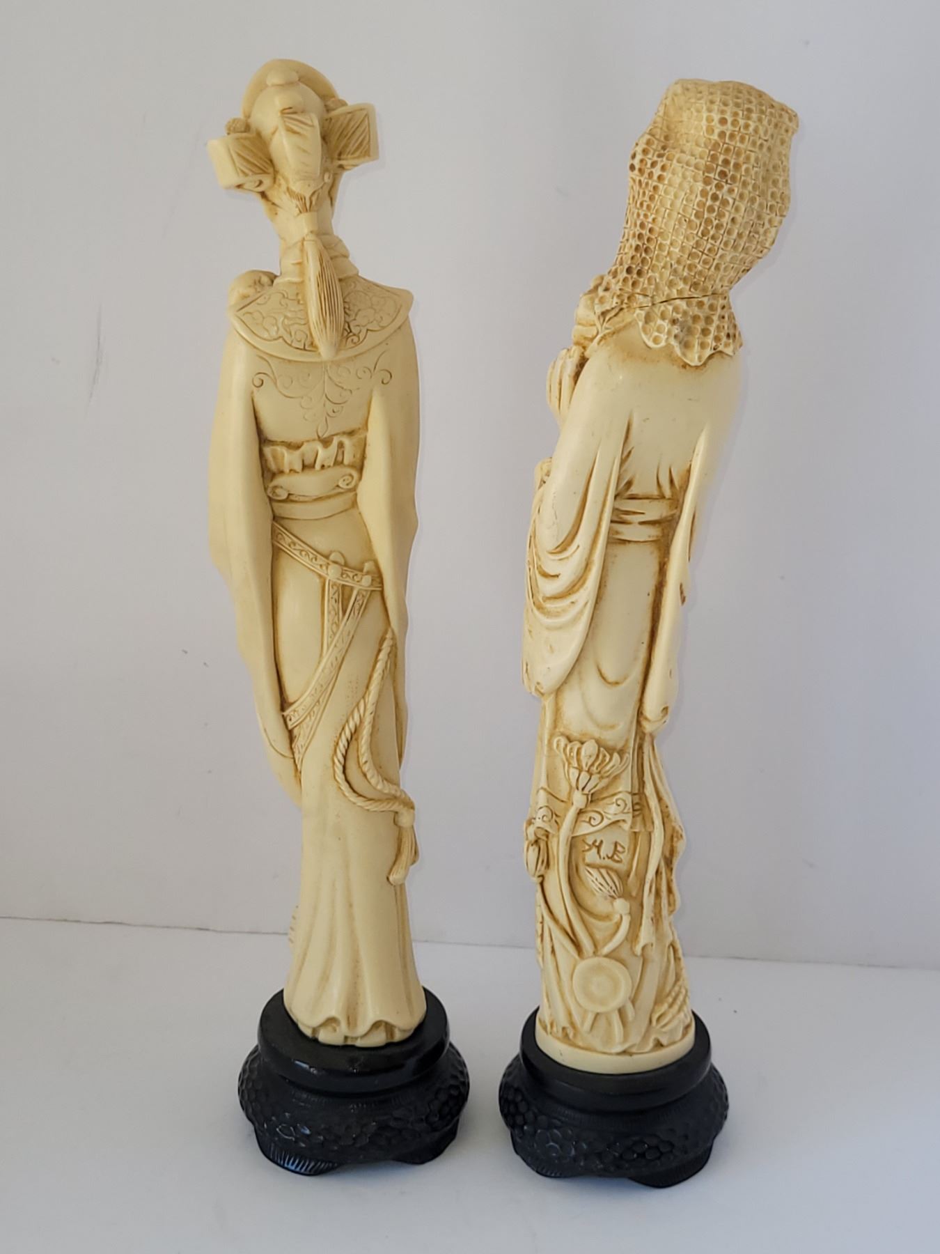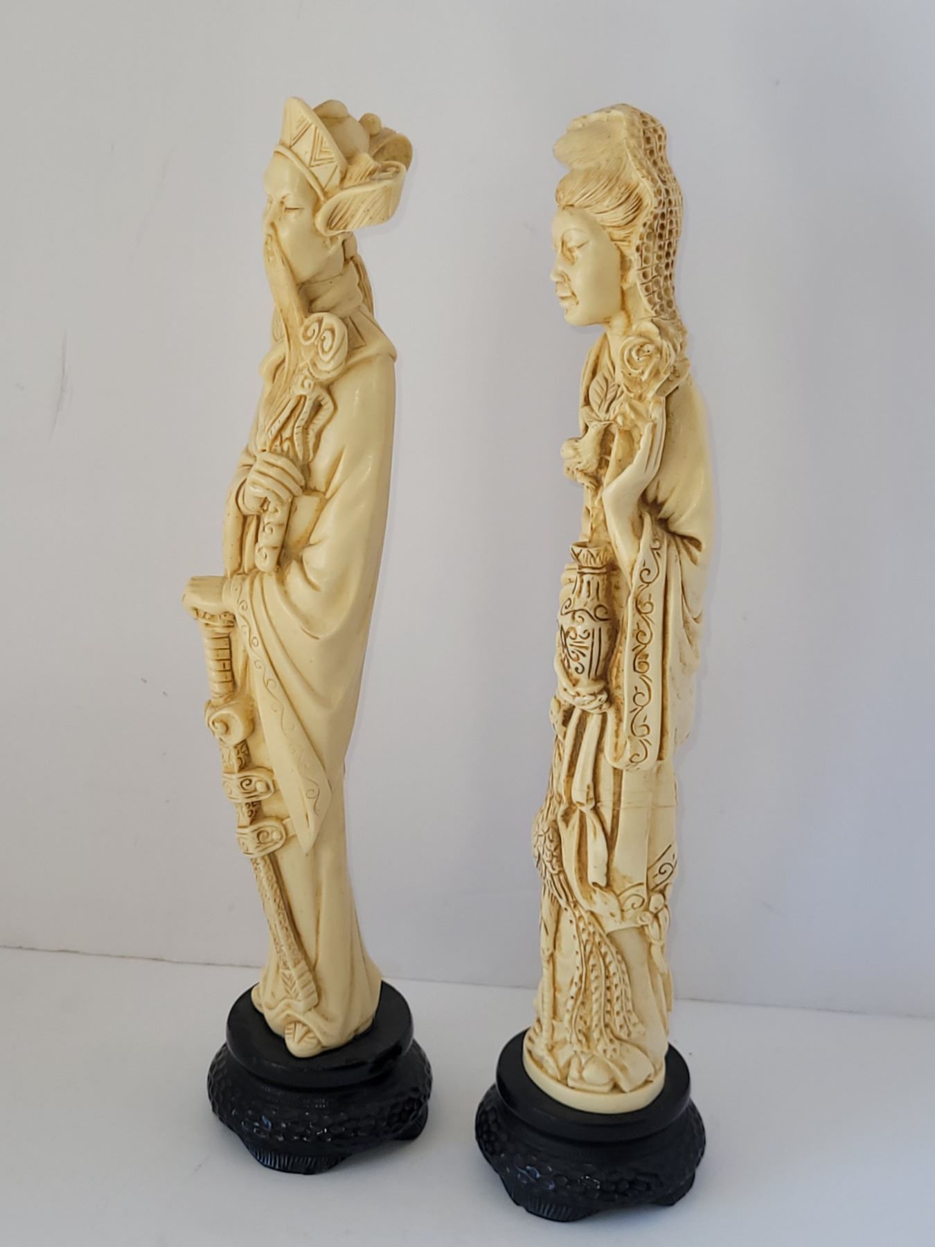 VERY OLD JAPANESE MATRIARCH COUPLE STATUE 2.25"X 12.25"