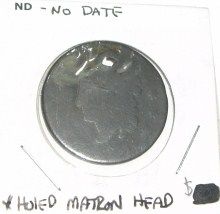 VERY OLD MATRON HEAD CENT *NO DATE* - Holed*!! ***Coin & Currency Grades, Conditions and Values are not Northern Colorado Estate Liquidators Responsibilty. Grades, Condition and Values are determined by Consigner(s) & Buyers ONLY***
