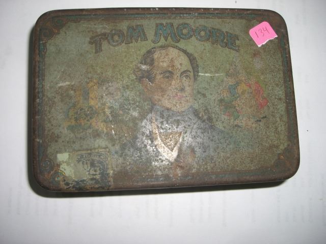 VERY OLD *RARE-HARD TO FIND* VINTAGE *TOM MOORE CIGARS* METAL BOX-BOOK VALUE $80.00!! ITEM CAME OUT OF ESTATE!! ***Coin, Currency & All Items Listed in this auction - Grades, Conditions and Values are not Safe Deposit Coins LLC Responsibilty. Grades, Condition and Values are determined by Consigner(s) & Buyers ONLY
