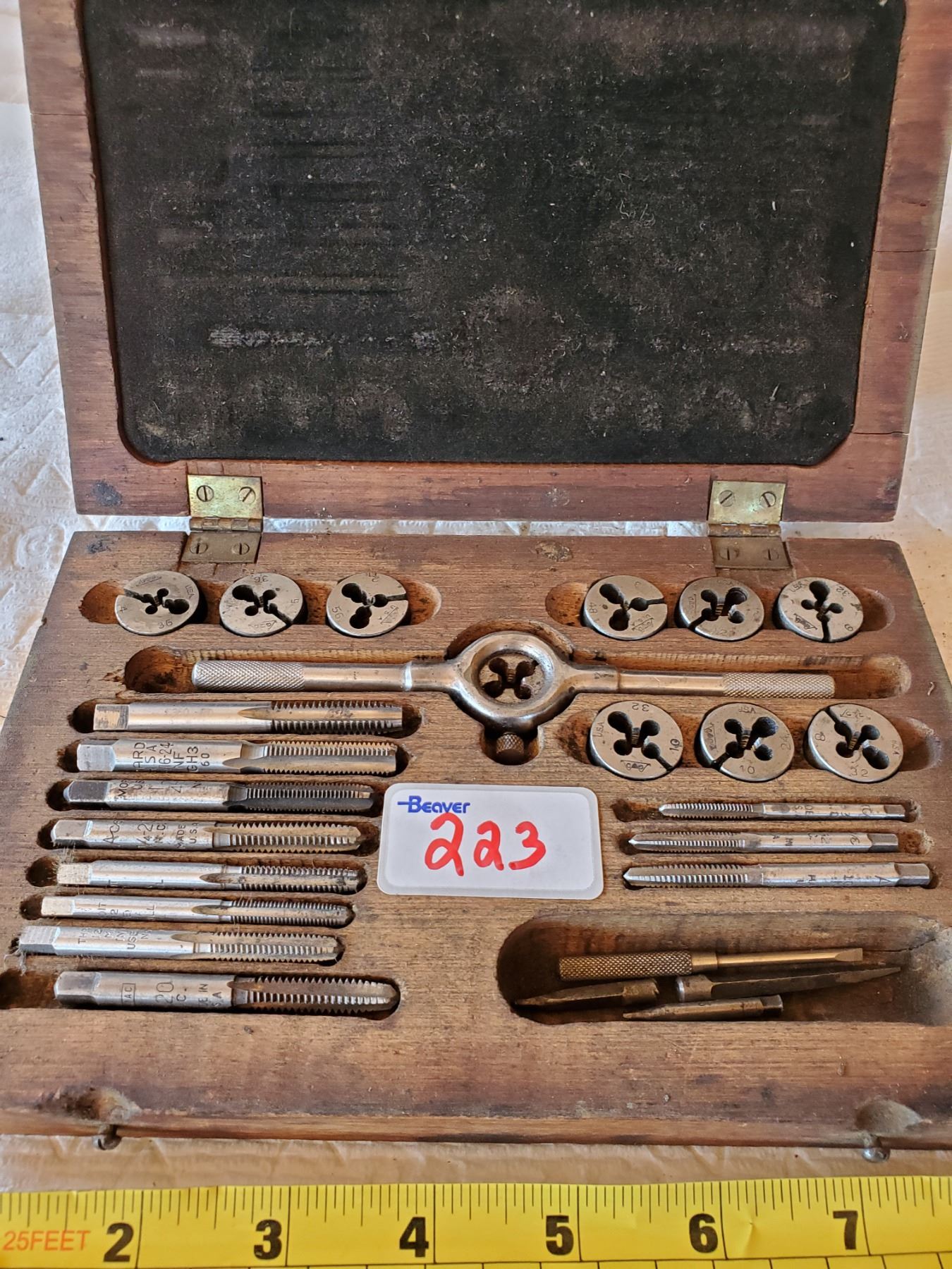 VERY OLD TAP & DIE SET- 26 PIECE, IN WOODEN BOX