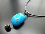 BLACK GLASS BEADED NECKLACE WITH TURQUOISE/TURQUOISE COLOR PENDANT. 16" 21/2" PENDANT. ELEGANT LOOKING.