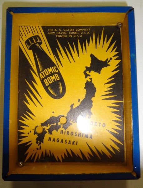 Very Rare Atomic Bomb games where the metals balls go into Nagasaki or Hiroshima holes on the board. Case is metal, in excellent condition, does not look used. Manufacture A.D. Gilbert Company, New Haven, Conn., U.S.A. Interesting WWII memorabilia