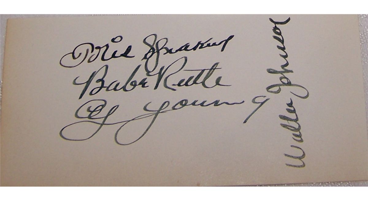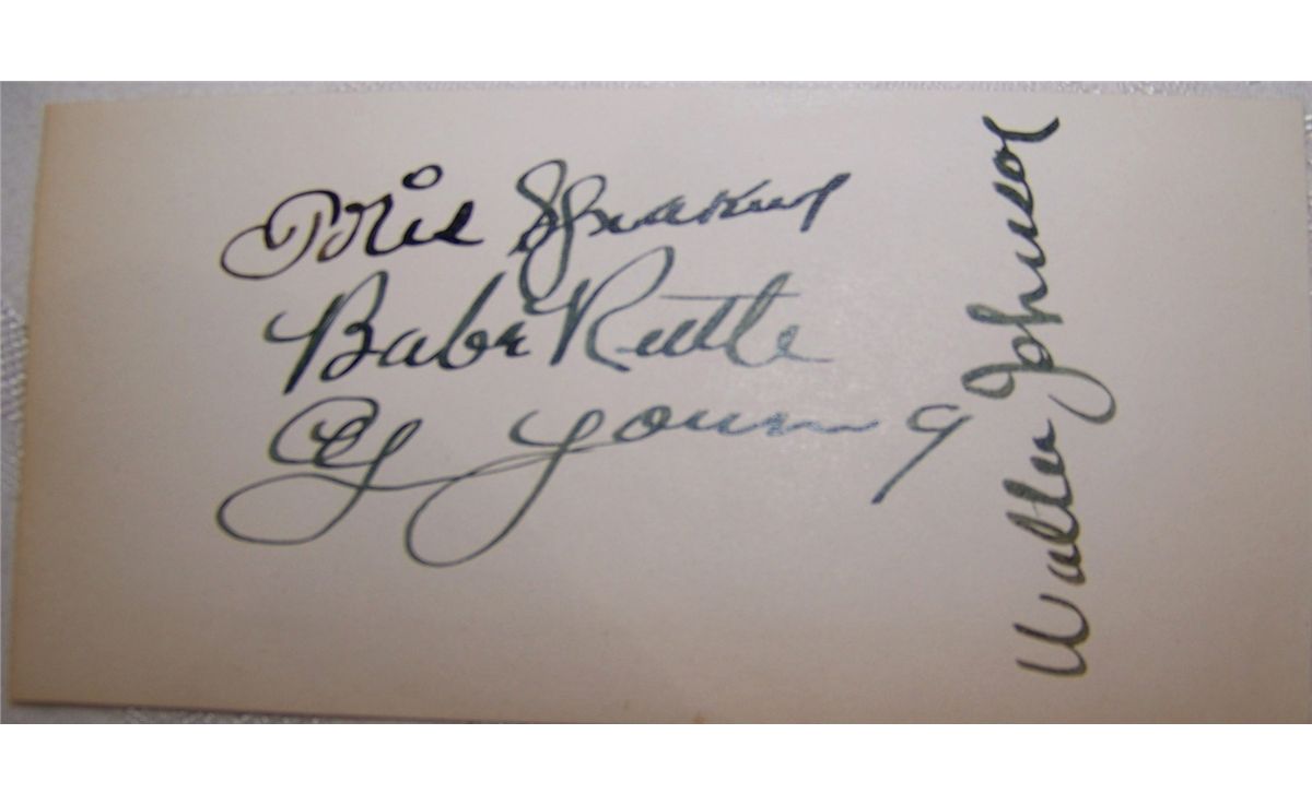 VERY RARE BABE RUTH, TRIS SPEAKER. CY YOUNG & WALTER JOUHNSON SIGNED CUT OUT