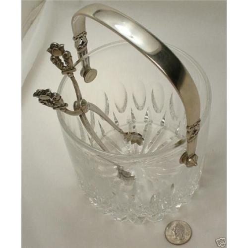 I am pleased to offer for sale a rare sterling and crystal ice bucket and large size ice serving tong in the coveted Acorn pattern.
