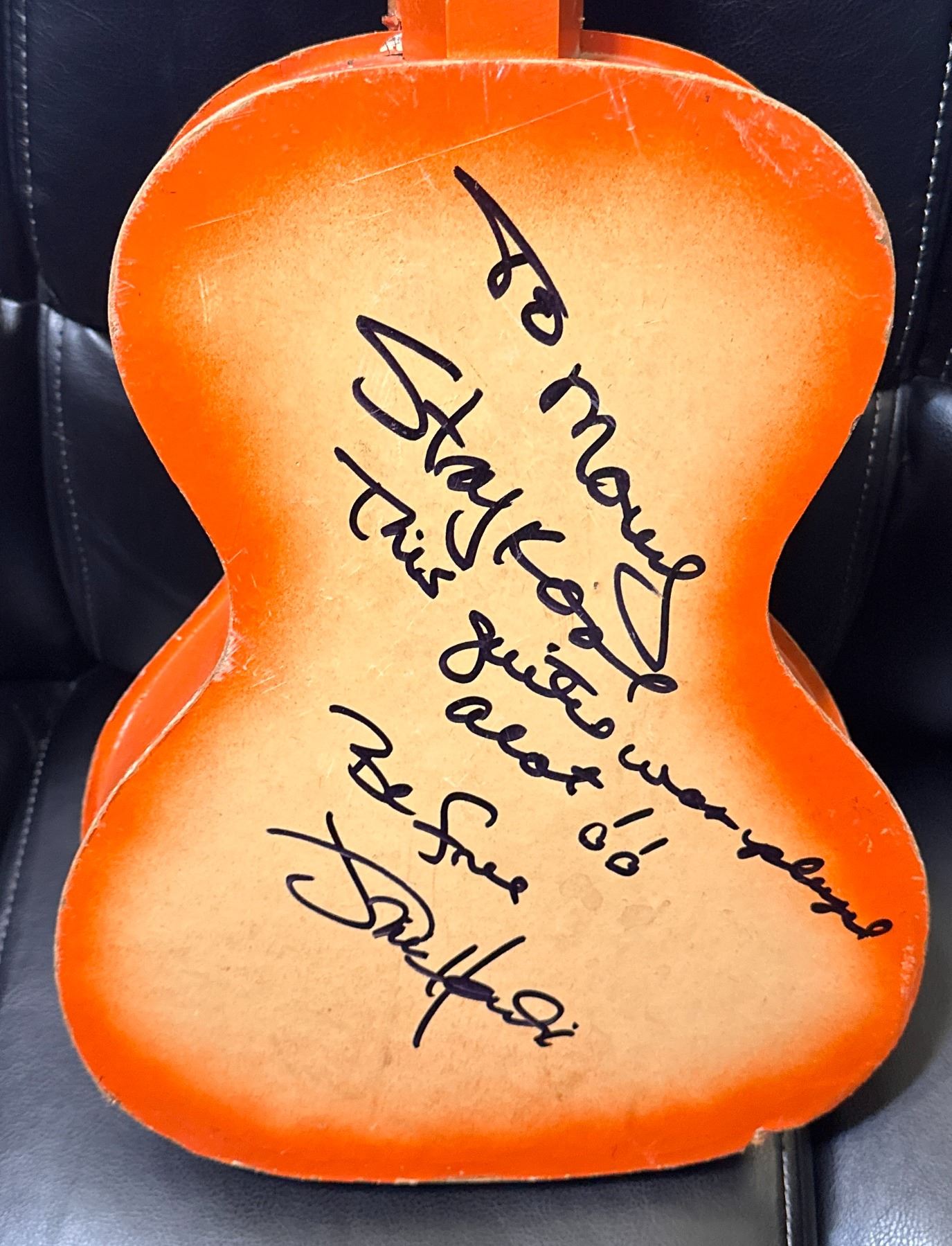 We charge $60 to ship guitars or larger framed items in the USA, INTERNATIONAL PAYS EXACT GUITAR OR OVERSIZED SHIPPING FEES. That is not our fee but the actual UPS fee. All other items are shipped free. Just a basic ground service if you would like faster service, please contact us. Your Bids
