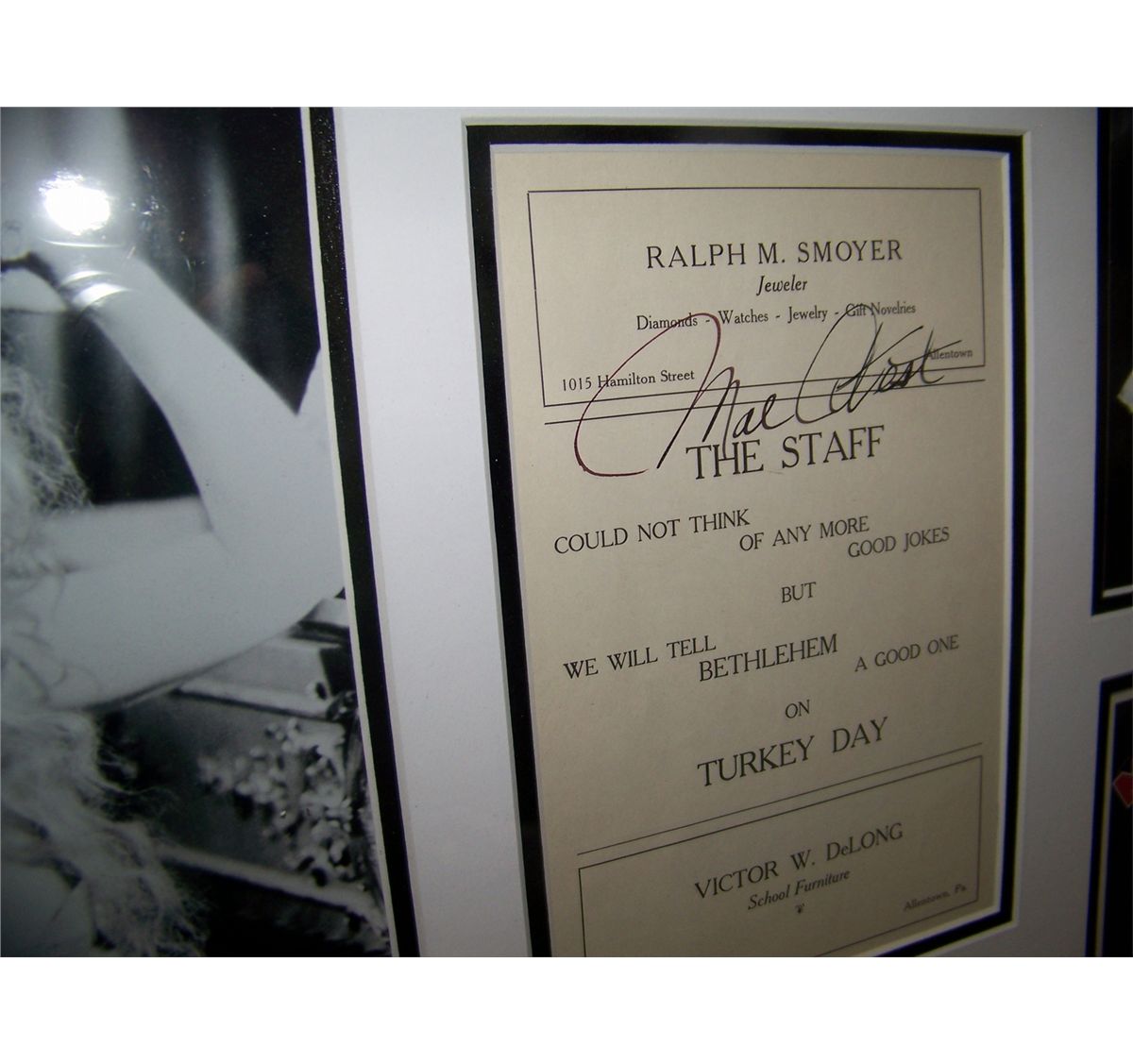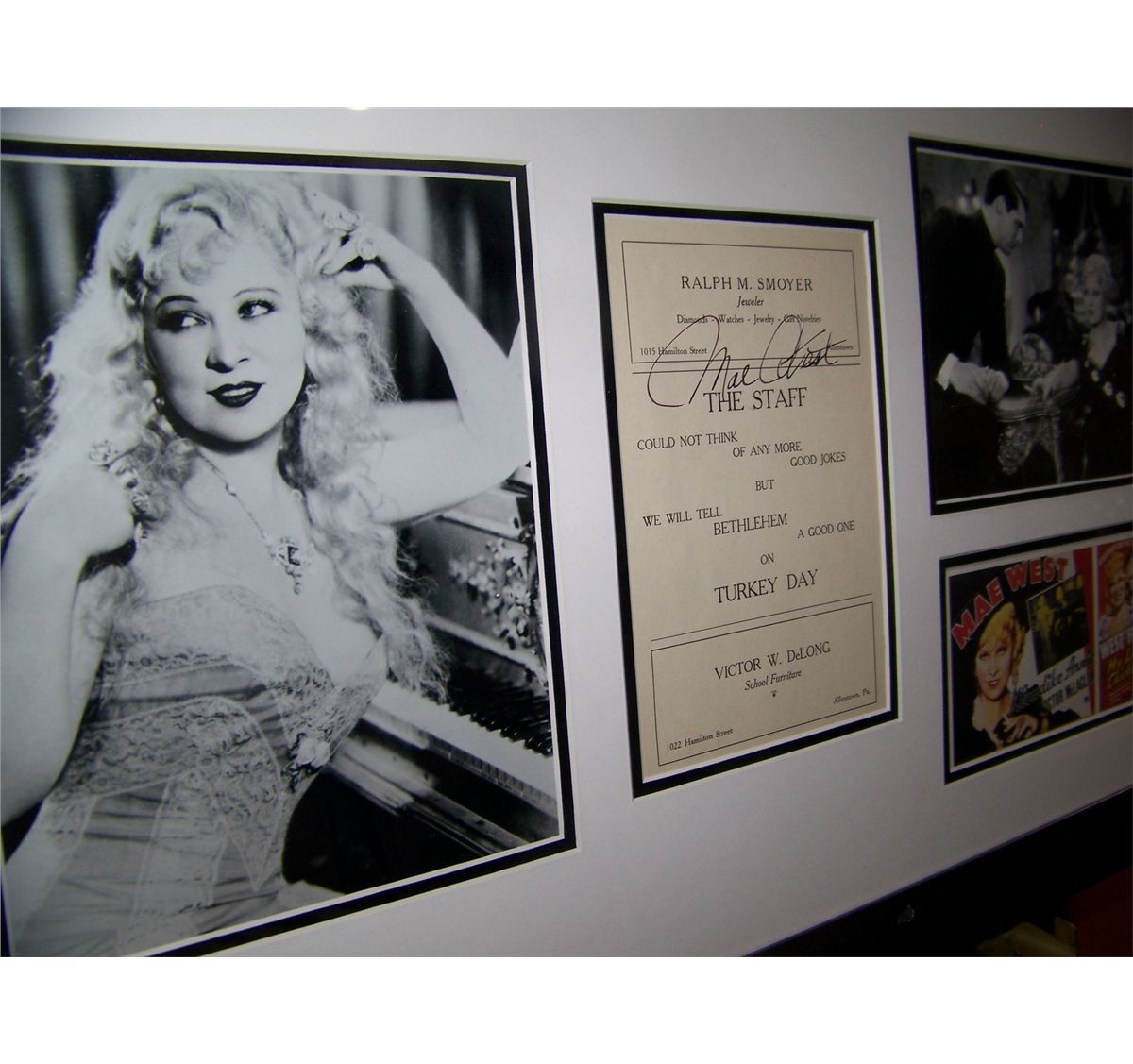 VERY RARE   MAE WEST  HAND SIGNED PROGRAM PAGE, WITH PICTURE IN CUSTOM FRAMED MEMORABILAI DISPLAY