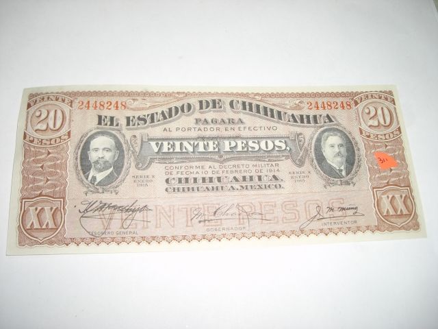VERY RARE *MEXICAN 20 VEINTE PESOS* NOTE EXTREMELY RARE *CHIHUAHUA MINT STATE GRADE!! ***Coin, Currency & All Items Listed in this auction - Grades, Conditions and Values are not Safe Deposit Coins LLC Responsibilty. Grades, Condition and Values are determined by Consigner(s) & Buyers ONLY***