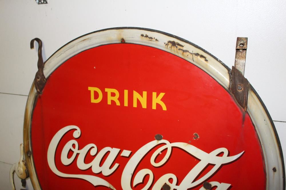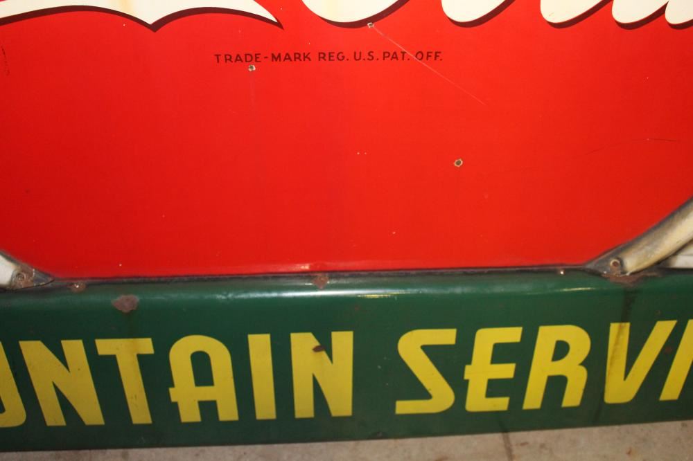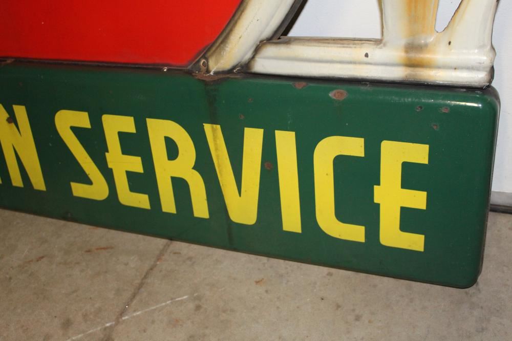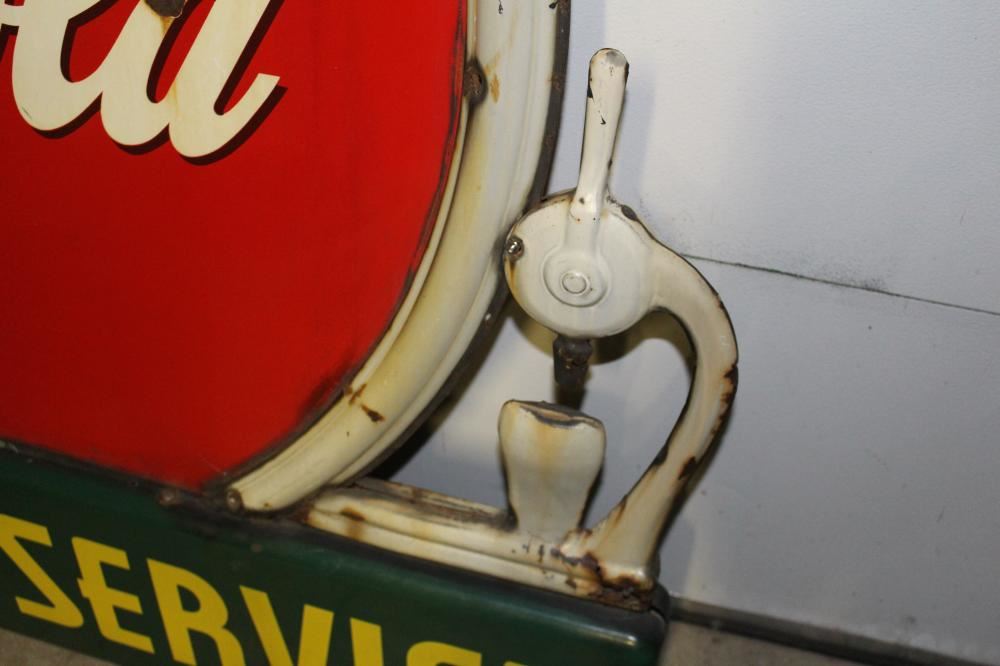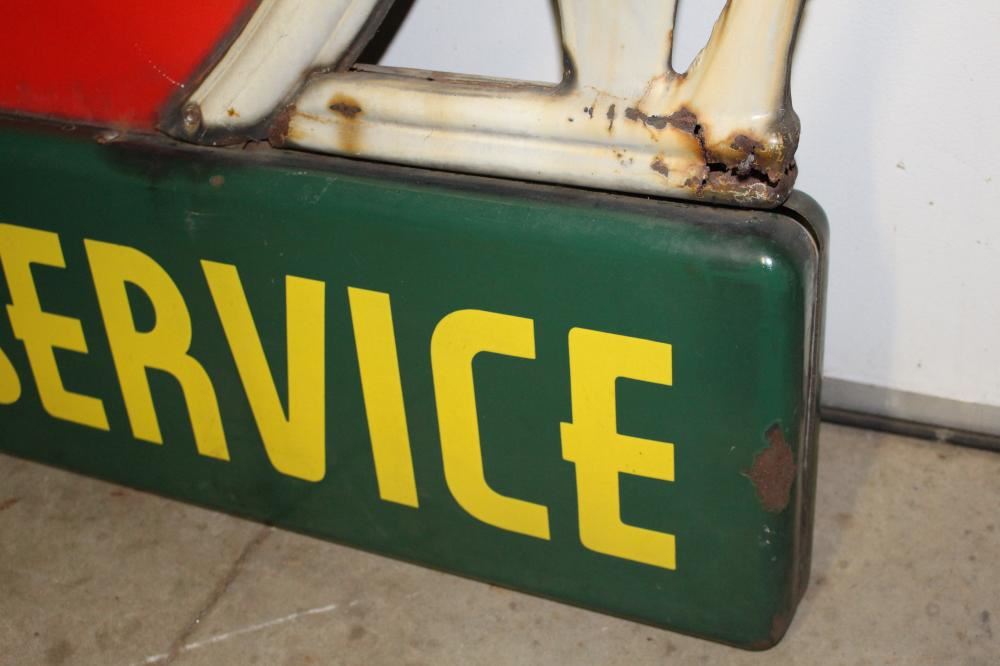 2 SIDED. 64X58. SIGN SHOWS WEAR AND RUST. NEEDS A GOOD CLEANING. APPROXIMATE SHIPPING COST $150 TO $400. THIS ITEM IS GUARANTEED TO BE OLD AND ORIGINAL.
