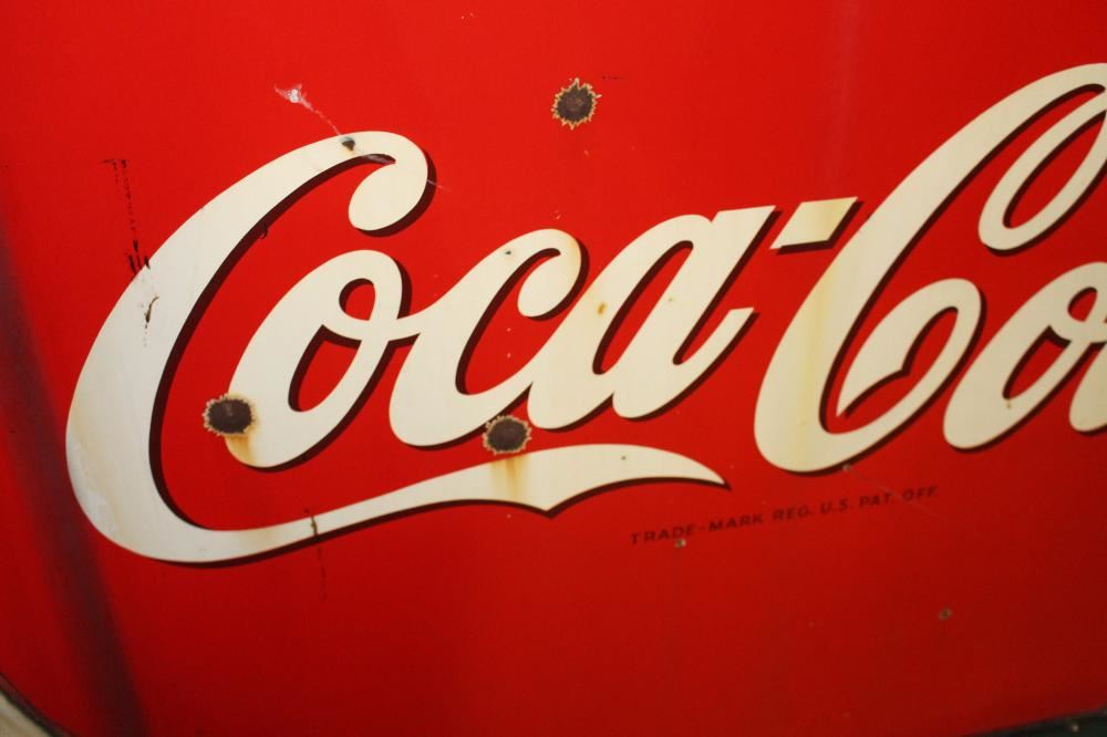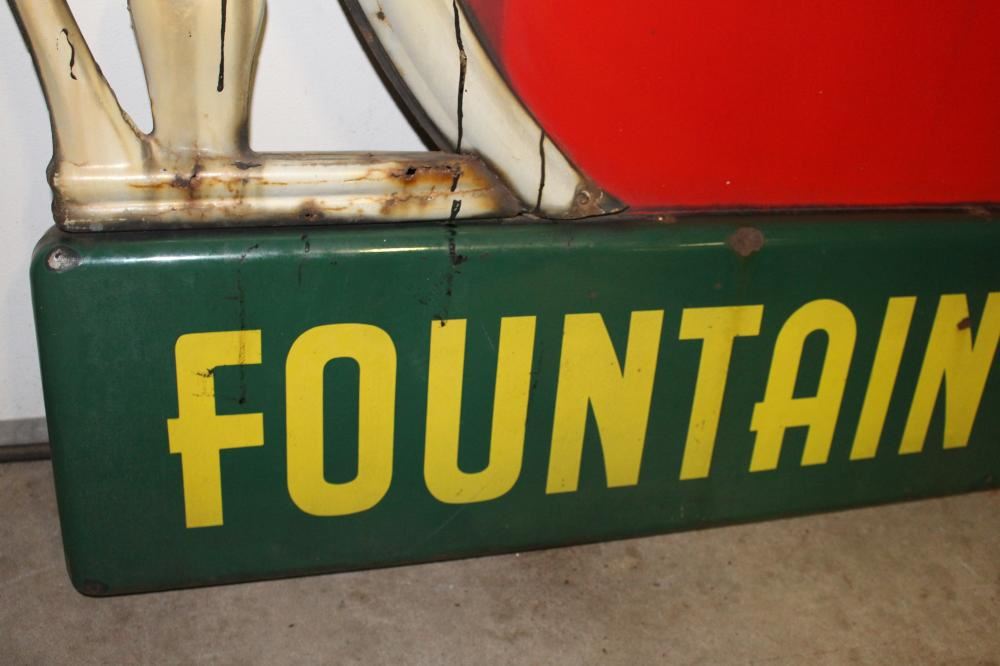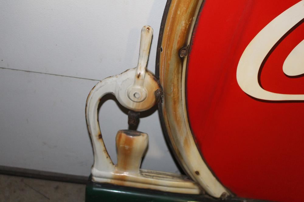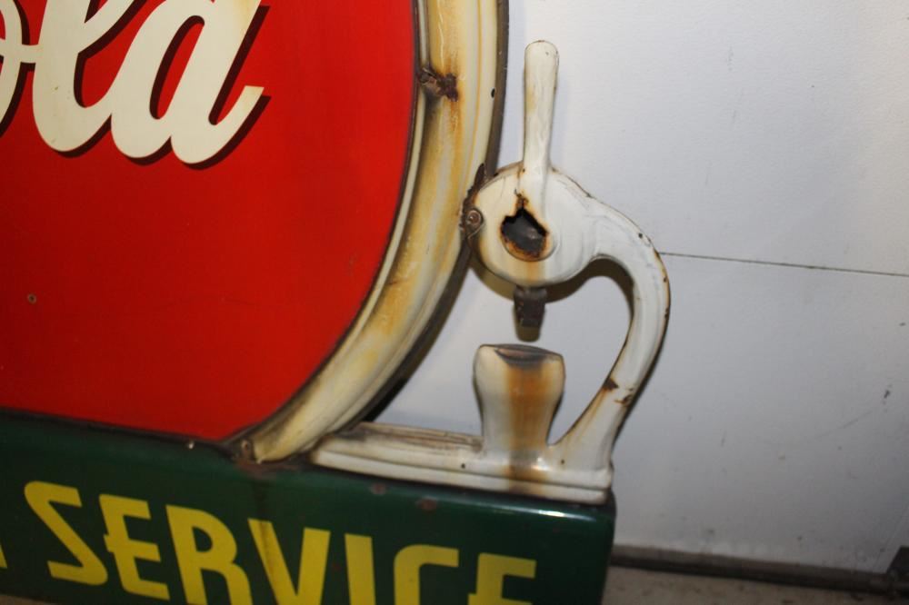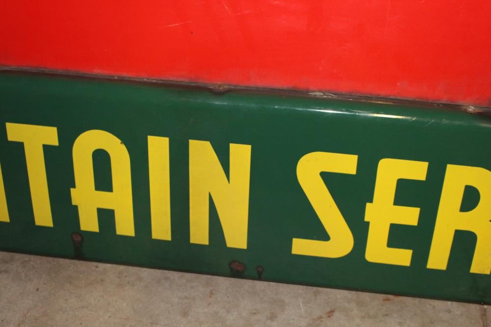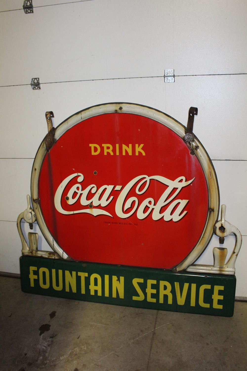 2 SIDED. 64X58. SIGN SHOWS WEAR AND RUST. NEEDS A GOOD CLEANING. APPROXIMATE SHIPPING COST $150 TO $400. THIS ITEM IS GUARANTEED TO BE OLD AND ORIGINAL.