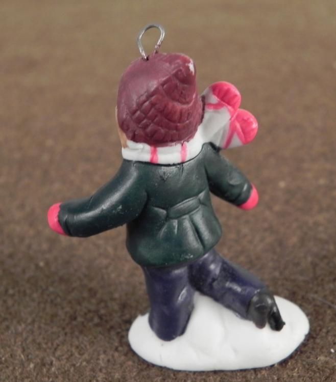 VERY RARE PORCELAIN NAZI CHRISTMAS TREE ORNAMENT OF BOY SKATING W/SWASTIKA ON BOTTOM * 2" TALL--HAND PAINTER--SWASTIKA IN WREATH ON BOTTOM *