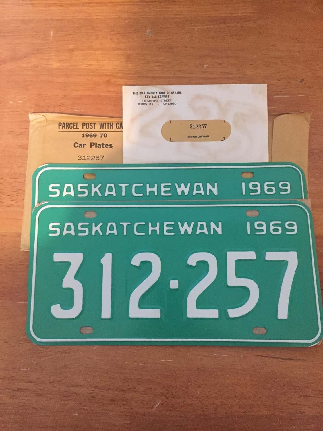 VERY RARE - Pair Of New/Old Stock 1969 Sask License Plates, Matching Numbers. EXTREMELY RARE TO FIND!