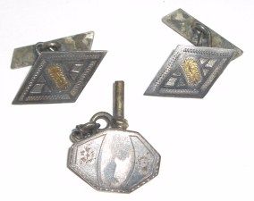 VERY RARE VINTAGE MIDDLE-EASTERN SILVER CUFF-LINKS & TIE TACK SET OF 3 *RARE UNIQUE SET* VERY UNIQUE DESIGN - CAME OUT OF SAFE!!! ***Coin, Currency & All Items Listed in this auction - Grades, Conditions and Values are not Safe Deposit Coins LLC Responsibilty. Grades, Condition and Values are determined by Consigner(s) & Buyers ONLY