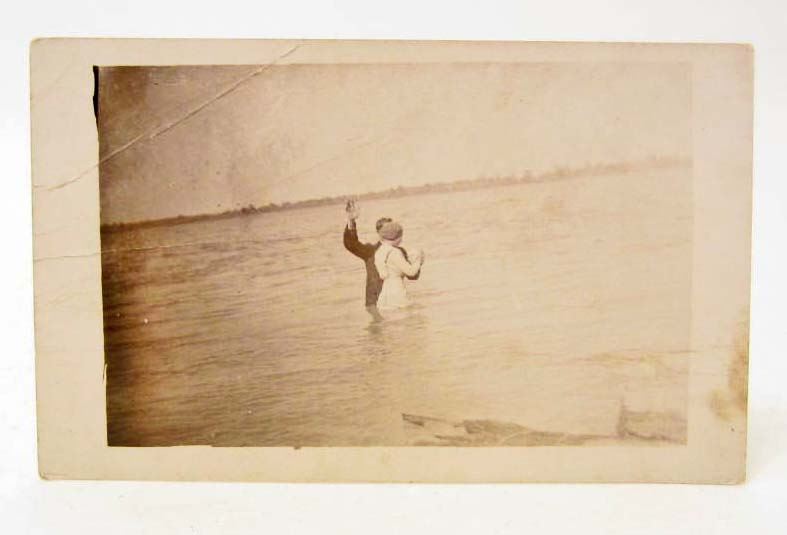 VERY RARE VINTAGE RPPC PHOTO POSTCARD OF BAPTISM IN LAKE