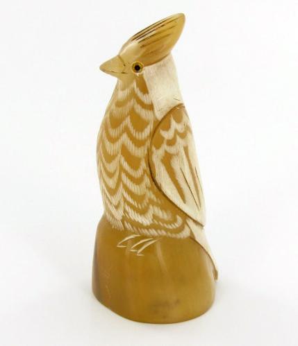 Excellent piece; finely carved on very rare WHITE water buffalo horn; 3"