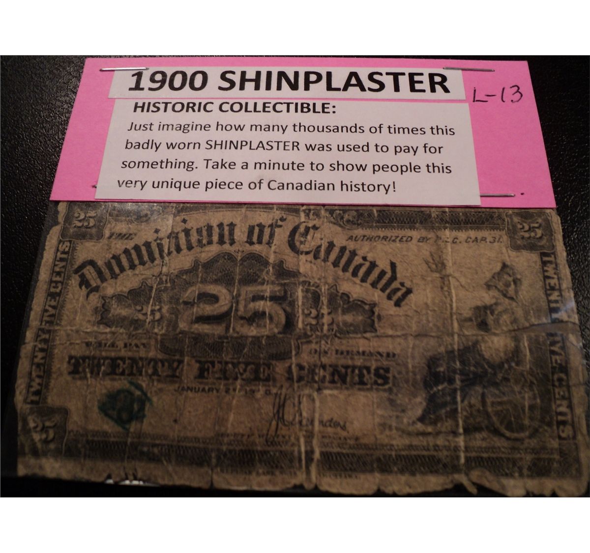 VERY ROUGH CANADA 1900 SHIN PLASTER BANK NOTE