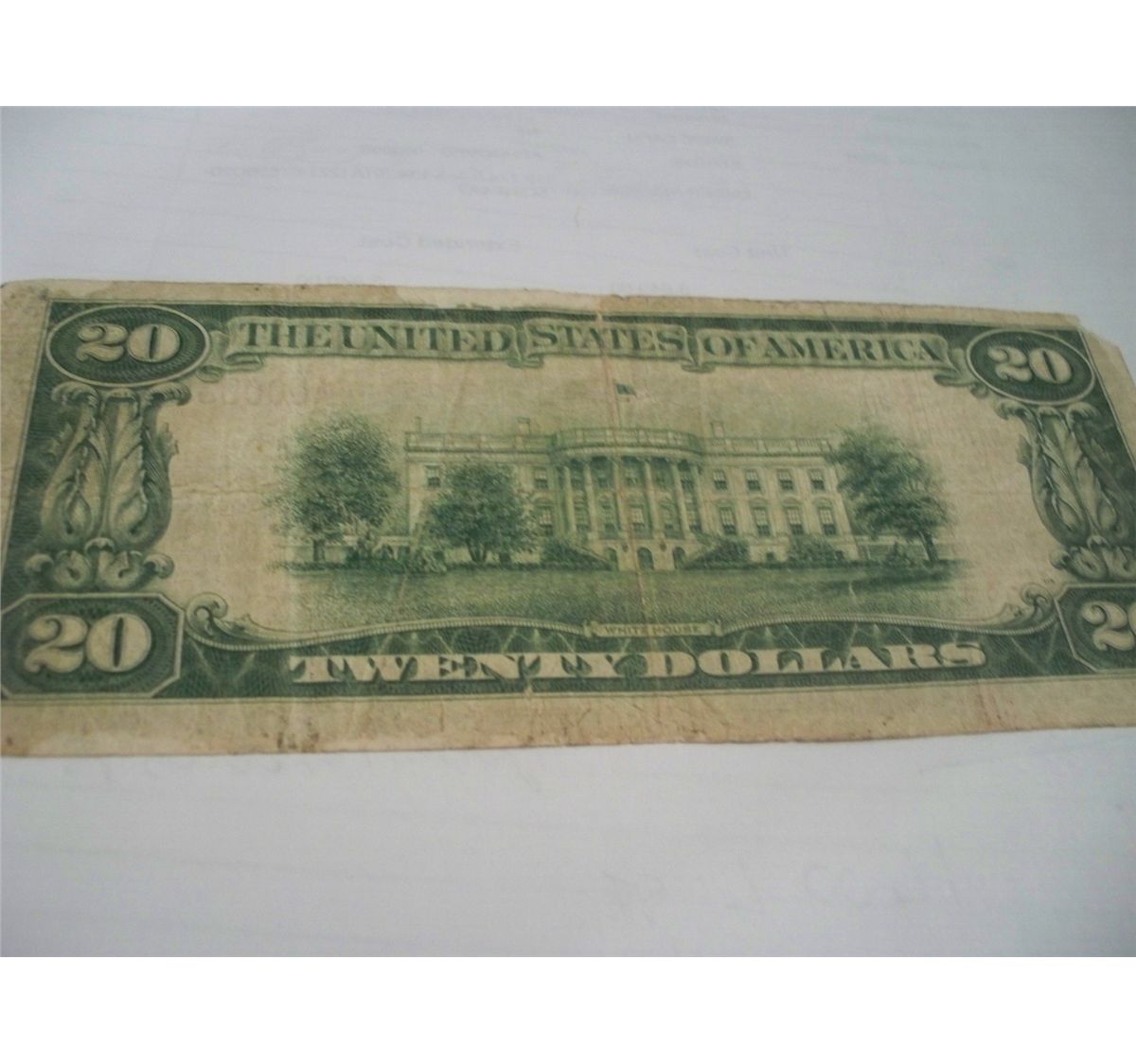 VERY SCARCE 1929 $20 TAYLOR NATIONAL BANK NOTE. Slight cut on left top corner, without that, this would be $1000
