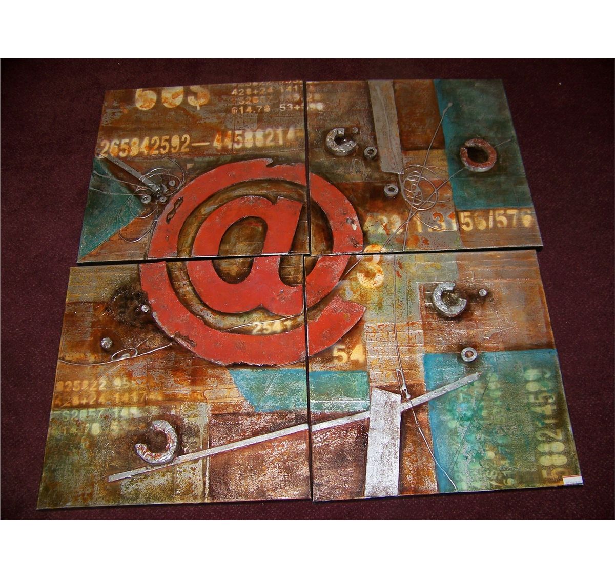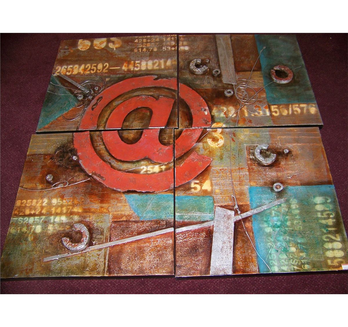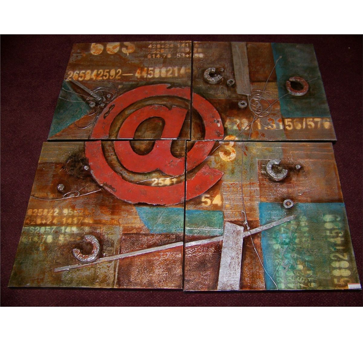 "@" VERY UNIQUE FOUR PIECE, MODERN MIXED MEDIA FINE ART SET.