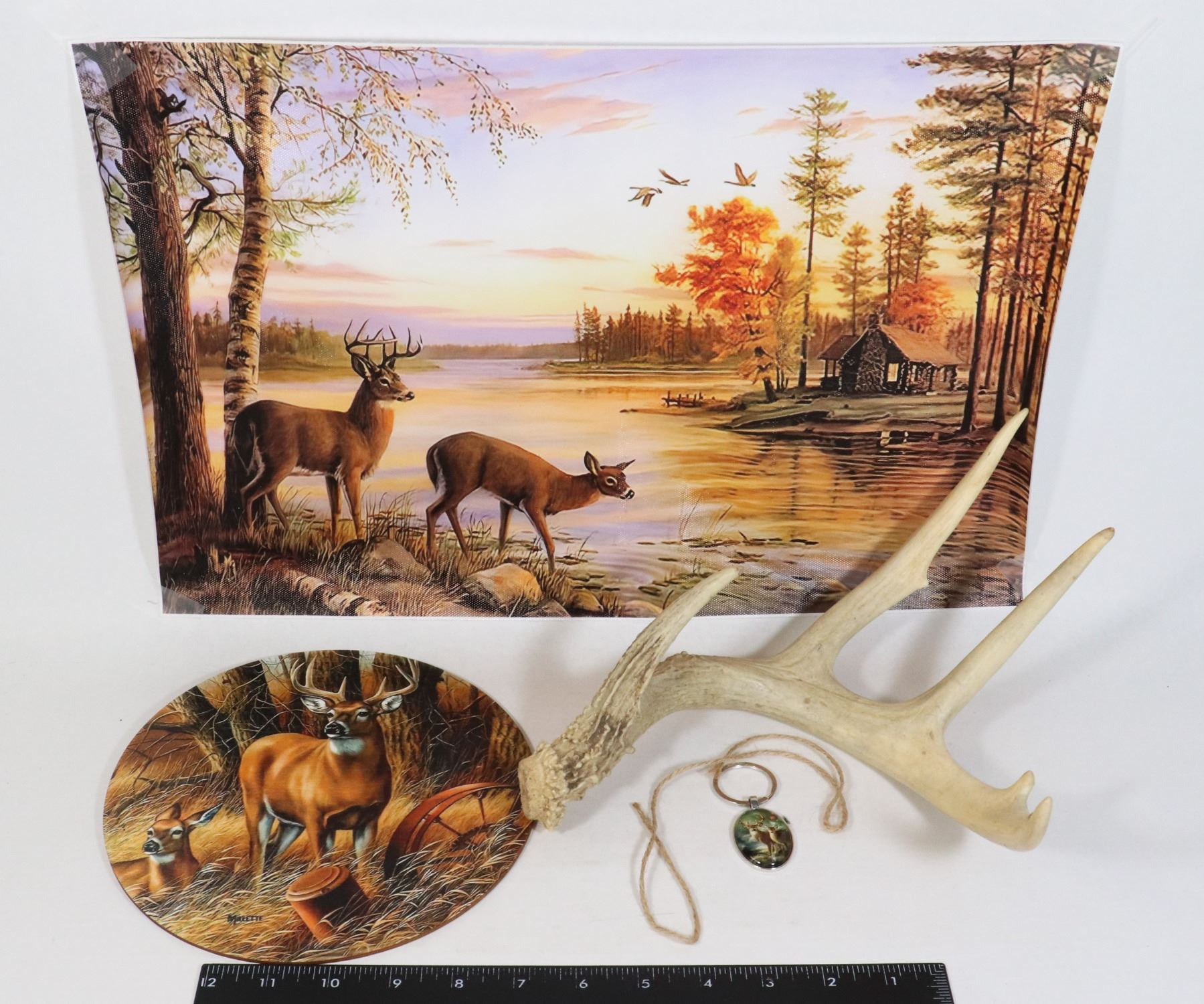 FRAMELESS 12" X 18" SOLD WITH CHARMING WHITE TAILED DEER ROUND WOODEN SIGN 8" DIAMETER COMES WITH PREMIUM WHITE TAILED DEER THEMED KEYCHAIN