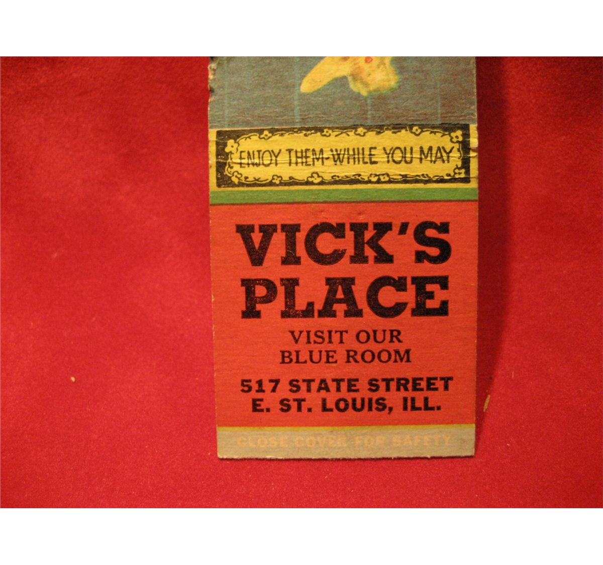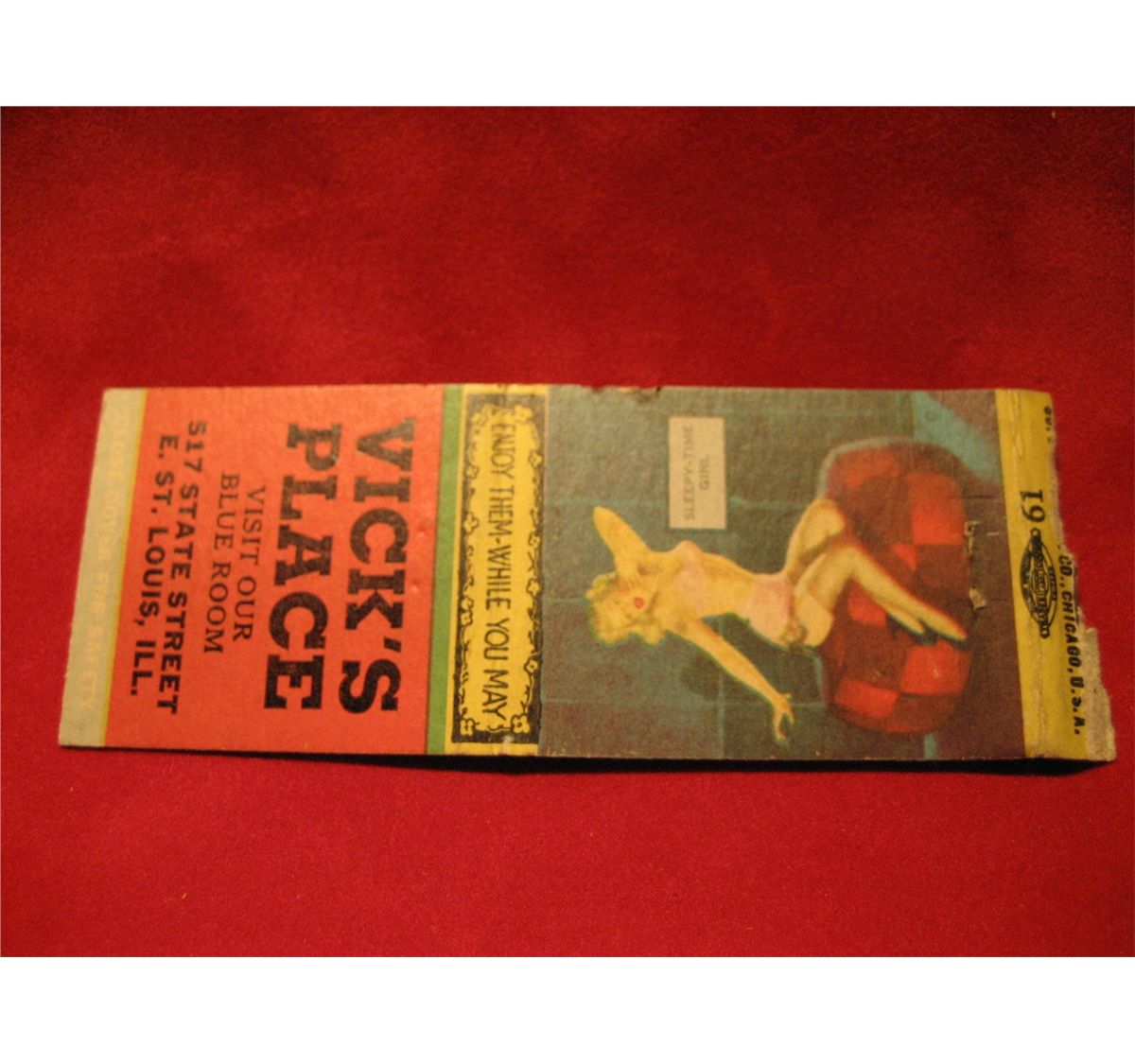 VICK'S PLACE BLUE ROOM PROVIDENCE E. ST. LOUIS ILL. SLEEPY – TIME GIRL PIN – UP MATCHCOVER GIL ELVGREN,