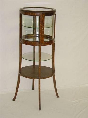 VICT. OAK ROUND CURIO CABINET W/ GLASS DOORS and SHELVES - IMPERFECTIONS;
